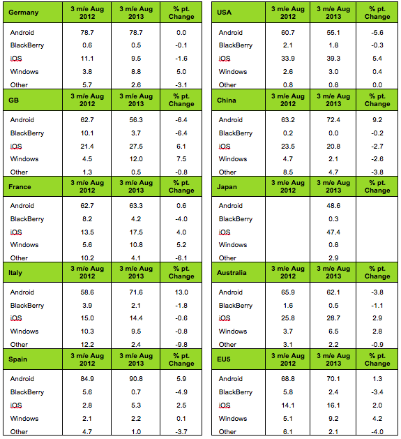 ถือเป็นข่าวดีของ Microsoft ต้อนรับการซื้อกิจการ Nokia เข้ามาในอ้อมกอด เมื่อผลสำรวจเผยให้เห็นส่วนแบ่งทางการตลาดของ Windows Phone เพิ่มขึ้นเกือบ 2 เท่าในประเทศกลุ่มยุโรปทั้งฝรั่งเศส เยอรมนี อิตาลี สเปน และอังกฤษ โดยเฉพาะเยอรมนีที่สัดส่วนตลาด Windows Phone และ iOS นั้นต่างกันเพียง 1% เท่านั้น