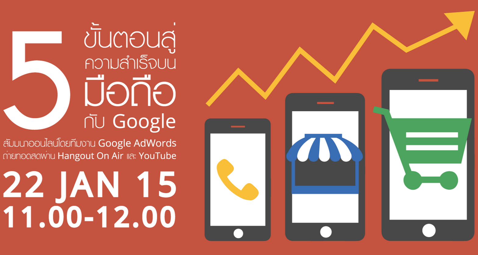 ทาง Google ส่งงานสัมมนามาให้ประชาสัมพันธ์กันครับ สำหรับคนที่อยากทำ Google Adwords เพื่อตอบโจทย์กับผู้ใช้งานที่คนไปอยู่บนโมบายล์เสียเป็นส่วนใหญ่ กับ “Go Mobile: 5 ขั้นตอนสู่ความสำเร็จบนมือถือ กับ Google AdWords”