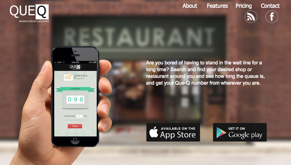 เชื่อว่าหลายๆ คนโดยเฉพาะชาวกรุงเทพ ต้องเบื่อกับการรอคิวร้านอาหารโปรด บางร้านไม่ใช่รอแค่ครึ่งชม บางทีอาจเป็นชม เลยด้วยซ้ำ นี่จึงเป็นที่มาของ ‘QueQ’ ซึ่งก็คือระบบจัดการคิวรูปแบบใหม่ ที่จะทำให้การรอคิวอันน่าเบื่อหายไป เข้าคิวได้โดยไม่ต้องไปถึงหน้าร้าน นั่งรอบิดแล้วบิดอีก แบบที่เราคุ้นเคยกันมาอย่างไม่มีทางเลือก และยังสามารถช่วยให้ร้านค้าต่างๆ จัดการกับระบบคิวอันยุ่งเหยิงได้อย่างมีประสิทธิภาพ รวมถึงมีทางเลือกใหม่ๆให้กับการทำตลาดอีกด้วย