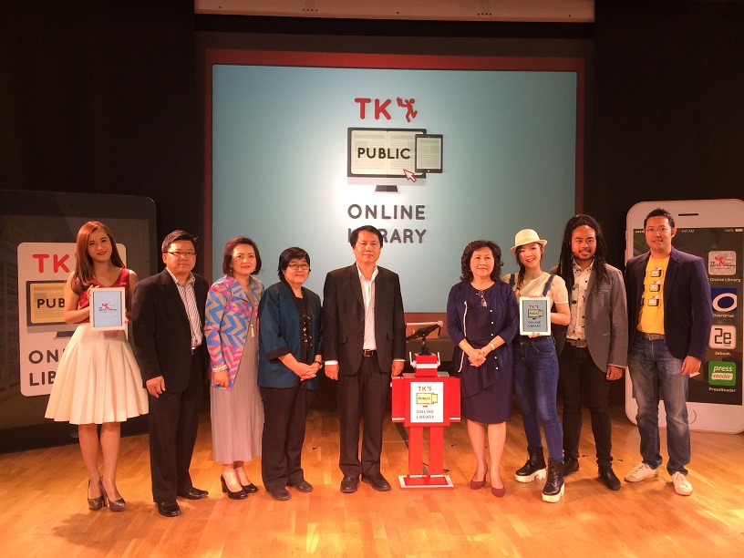 โดย TK Public Online Library คือการให้บริการด้านการอ่านและการเรียนรู้ของห้องสมุดในช่องทางใหม่โดยใช้สื่อดิจิทัล ครอบคลุมถึงการให้บริการการอ่าน ชมและฟัง ในรูปแบบไฟล์อิเล็กทรอนิกส์หลากหลายรูปแบบ กว่า 7000 รายการ จากฐานข้อมูลภาษาไทยและภาษาต่างประเทศ จำนวน 4 ฐานข้อมูลด้วยกัน ได้แก่ TK Online Library, 2eBook, OverDrive และ Press Reader นับว่าเราคือห้องสมุดสาธารณะออนไลน์ที่ใหญ่และทันสมัยที่สุดในประเทศไทยในขณะนี้