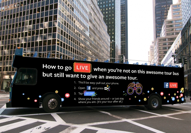 นอกจากการซื้อบิลบอร์ดดิจิทัลให้ผู้สัญจรไปมาได้ชม Facebook ยังมีแผนโฆษณา Live ผ่านรายการทีวี รายงานระบุว่าเนื้อหาของโฆษณาทีวีจะยังยึดแผนเดิมของ Facebook เรื่องการเลือกดึงเอาช่วงเวลายอดเยี่ยมจากวิดีโอของผู้ใช้ตัวจริงมาตัดต่อเรียงร้อยเป็นวิดีโอโฆษณาทีวี จุดนี้เป็นผลต่อยอดจากคุณสมบัติแผนที่ Facebook Live Map ซึ่งผู้ใช้ทุกคนสามารถเลือกชมวิดีโอสดจากทุกมุมโลกได้