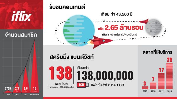 เทรนด์การรับชมคอนเทนต์แบบออนดีมานด์มีการเติบโตที่มากขึ้นอย่างรวดเร็ว จนกลายเป็นพฤติกรรมของคนยุคใหม่ไปเสียแล้ว ล่าสุด iflix ผู้ให้บริการสตรีมมิ่งและดาวน์โหลดซีรี่ย์และหนังระดับโลก ได้ประกาศจำนวนสมาชิกล่าสุดที่มีกว่า 15 ล้าน Subscribe แล้ว เรียกได้ว่าเติบโตกว่า 250% เมื่อเทียบกับช่วงต้นปีที่ผ่านมา