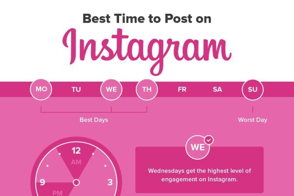 บริษัท Oberlo ผู้จัดทำ Infographic นี้ย้ำว่าเวลาที่ดีที่สุดในการโพสต์บน Instagram อยู่ระหว่างเวลา 11.00 น. – 14.00 น. (เวลาอาหารกลางวัน) และ 19.00-21.00 น. ขณะที่ Facebook มีสถิติ engagement ดีที่สุดหากโพสต์นั้นถูกเผยแพร่ช่วง 13.00-16.00 น. เนื่องจากคนทำงานมีแนวโน้มจะเช็ก Facebook ช่วงบ่ายที่มีเวลาว่างในที่ทำงาน