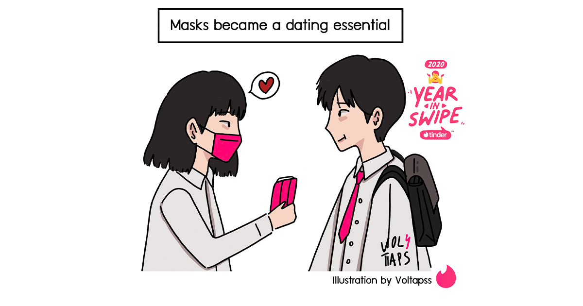 เหล่าสมาชิก Tinder ต่างพากันพร้อมใจ สวมหน้ากากเข้าหากัน ซึ่งการพูดถึงหน้ากากอนามัยเริ่มปรากฎให้เห็นบนโปรไฟล์ Tinder มากขึ้นตั้งแต่เดือนมีนาคมที่ผ่าน