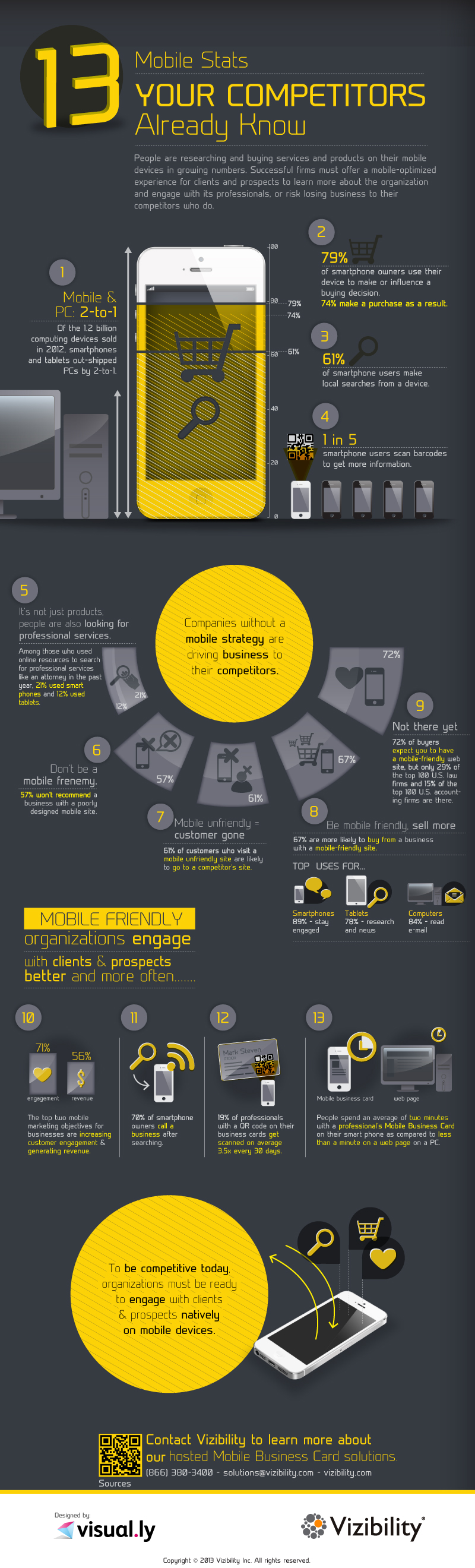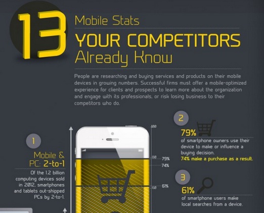“13 Mobile Stats Your Competitors Already Know” คือชื่อแผนภาพ Infographic ชิ้นล่าสุดของเว็บไซต์ Vizibility.com ซึ่งเรียกความสนใจจากผู้พบเห็นได้มหาศาล เพราะทุกคนอยากตามไปดูว่า มีข้อมูลสถิติในโลกโมบายล์ใดบ้างที่คู่แข่งรู้ แต่เรายังไม่รู้