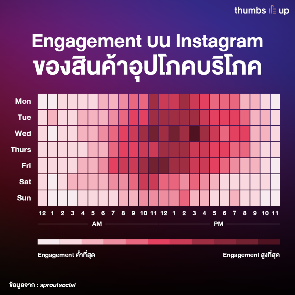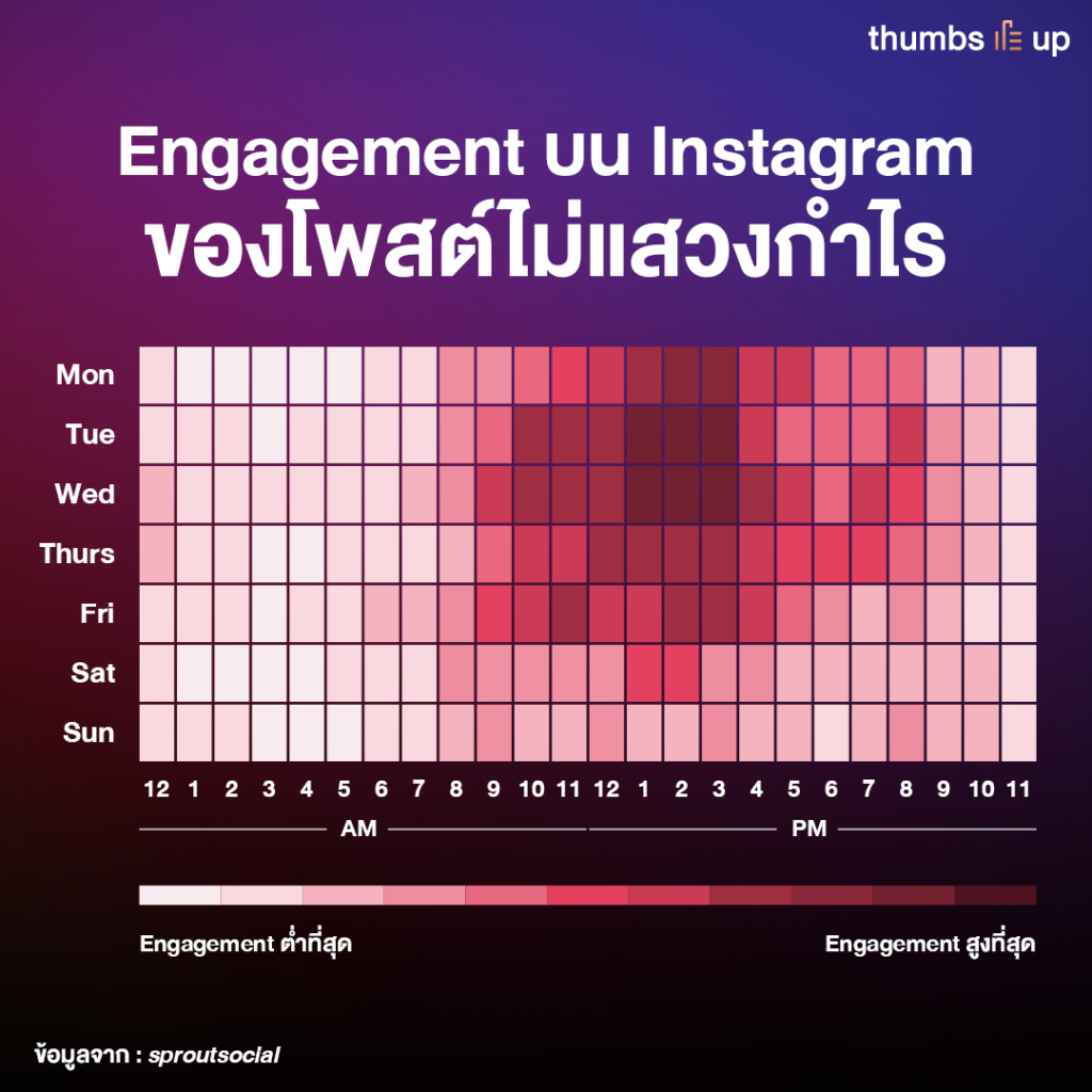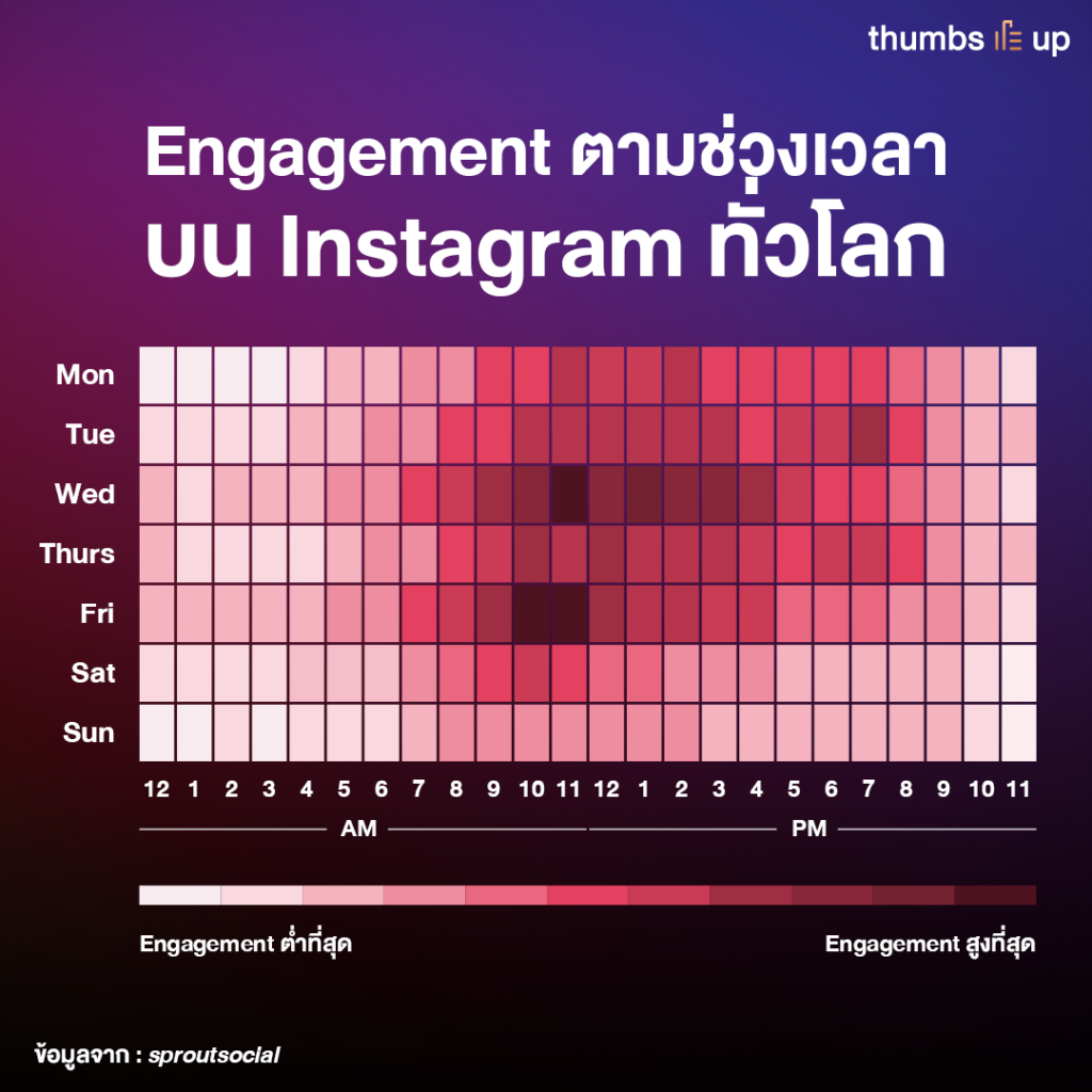 ช่วงเวลาที่สื่อควรโพสต์บน Instagram เมื่อดูจาก Engagement เป็นดังนี้