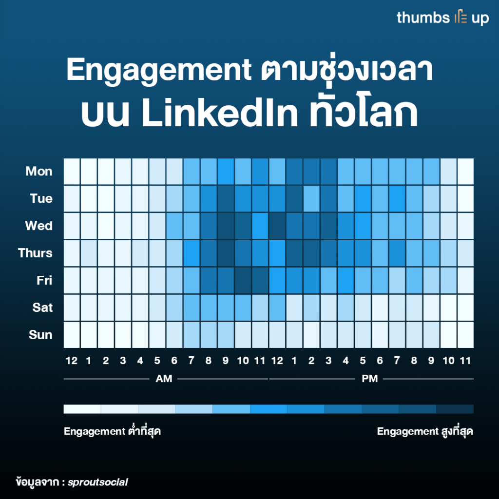 - ช่วงเวลาที่ดีที่สุดสำหรับการโพสต์ คือ วันพุธ เวลา 7.00