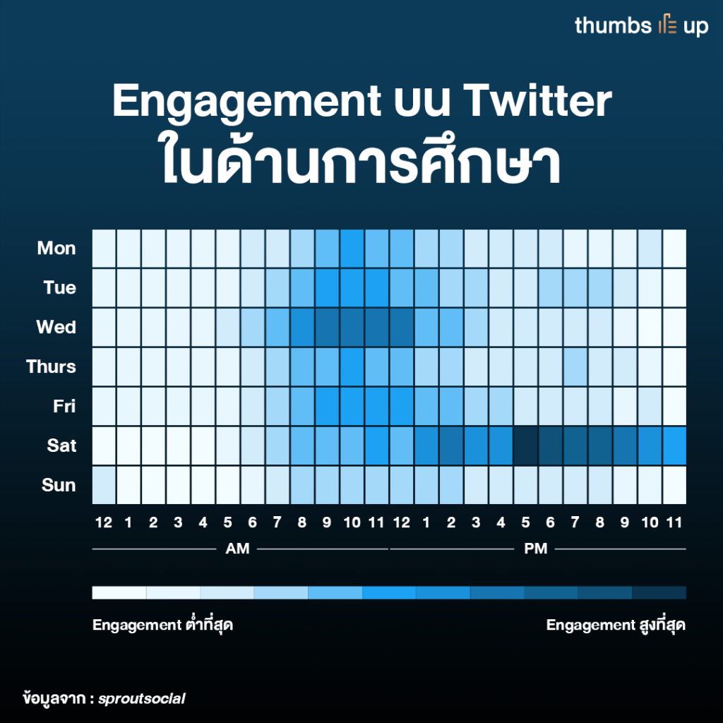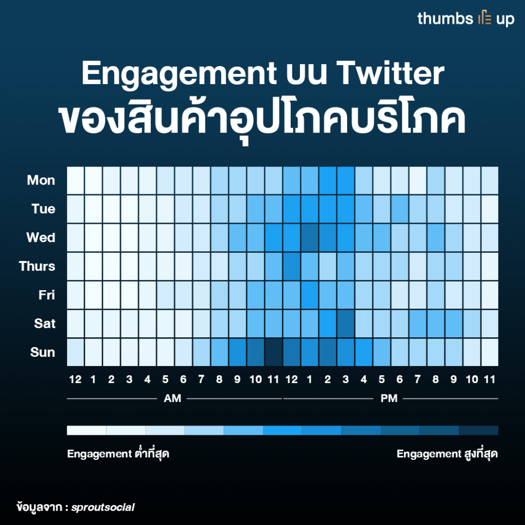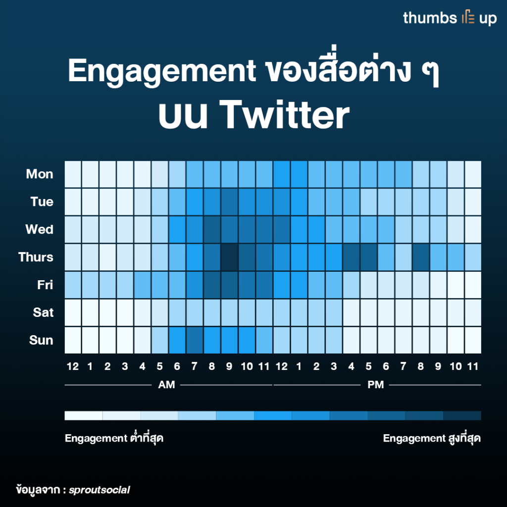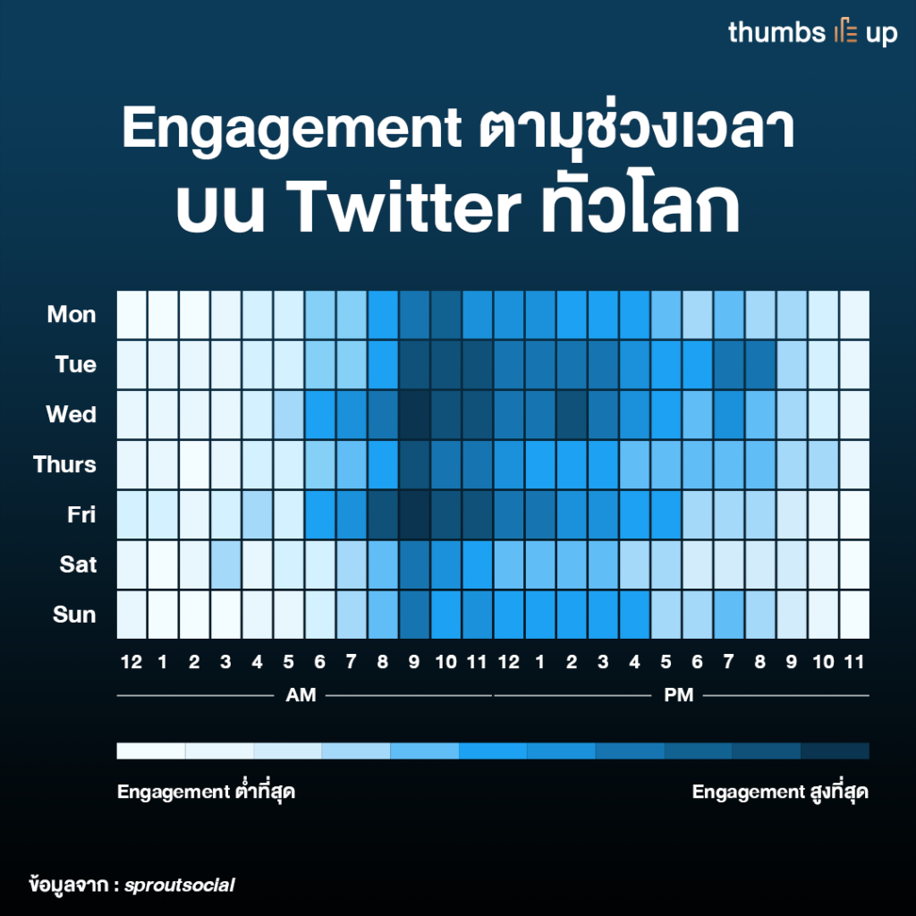 ดังนั้นการโพสต์ในช่วงที่มี Engagement น้อยๆ อาจทำให้คุณพลาดโอกาสในการเข้าถึงผู้ใช้ Twitter ไปอย่างน่าเสียดาย