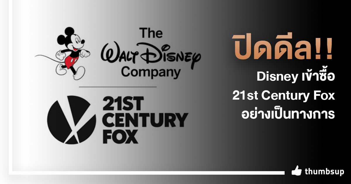 The Walt Disney และ 21st Century Fox ต่างออกแถลงการณ์ยืนยันการปิดดีลที่มีการเจรจามานานร่วมปี โดย Disney จะเข้าซื้อกิจการ 21st Century Fox เป็นมูลค่า 71,000 ล้านดอลลาร์สหรัฐฯ (คิดจากมูลค่าตามบัญชีต่อหุ้น) โดยการซื้อกิจการจะมีผลตั้งแต่วันนี้ (20 มีนาคม 2562)