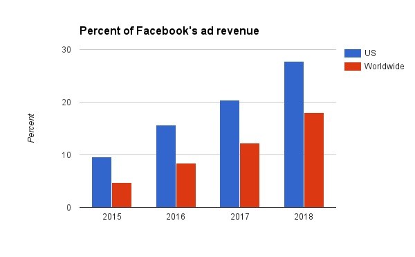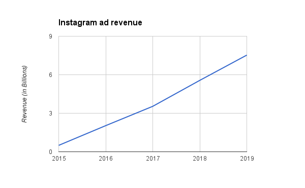 หลายปีก่อนหน้านี้ รายได้ค่าโฆษณาของเครือข่ายสังคมภาพ Instagram นั้นค่อย ๆ เติบโต แต่เมื่อ Instagram ถูกรวบตัวมาอยู่ใต้ชายคา Facebook การเติบโตก้าวกระโดดจึงเกิดขึ้น ทำให้นักวิเคราะห์มองเห็นทิศทางเติบโตนี้ ซึ่งอาจจะยังอยู่คู่ Instagram ไปอีกนานตามแผนภาพ 5 ชิ้นนี้
