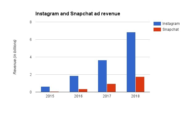 นี่จึงนำไปสู่กราฟ 5 การสำรวจของ eMarketer เปรียบเทียบรายได้โฆษณาระหว่าง Snapchat และ Instagram จุดนี้ Chris Wallace กรรมการผู้บริหาร Mindshare San Francisco ให้ความเห็นในรายงานของ eMarketer ด้วยว่าแม้สัดส่วนที่แสดงในกราฟจะทำให้เห็นว่า Instagram มีรายได้มากกว่าต่อเนื่อง แต่ Snapchat ก็ยังเป็นหนามที่ตำใจ Instagram ได้อยู่ดี