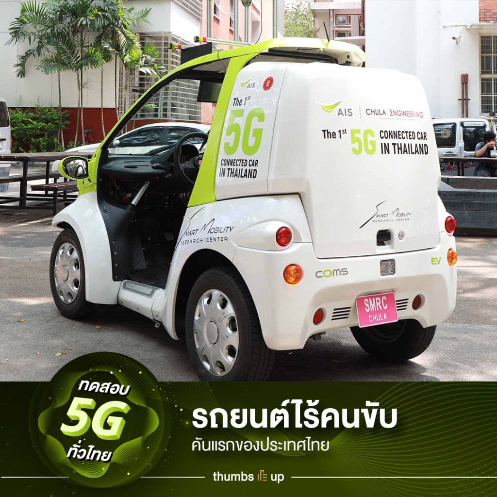 เดือน เม.ย. 62 เปิดตัวรถยนต์ไร้คนขับคันแรกของไทยที่เชื่อมต่อบนเครือข่าย 5G Live Network ที่เกิดจากการศึกษาและทดลองอย่างจริงจังร่วมกันระหว่าง SMART MOBILITY RESEARCH CENTER จุฬาลงกรณ์มหาวิทยาลัย ที่ทำให้รถยนต์สามารถเดินทางจากจุดหนึ่งไปอีกจุดหนึ่งได้อย่างแม่นยำและปลอดภัย โดยไม่ต้องใช้คนขับ ผ่านการใช้งานเครือข่าย 5G และสาธิตการใช้ VDO call บนเครือข่าย 5G ครั้งแรกในประเทศไทย