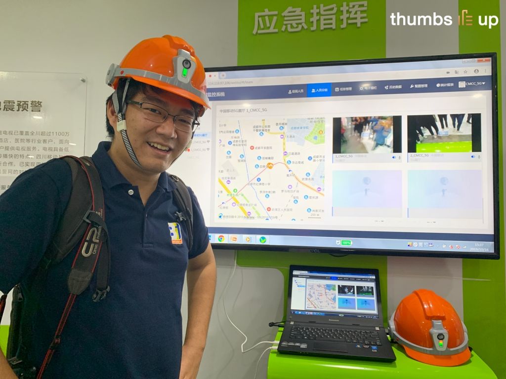อีกตัวอย่างที่น่าสนใจคือ การติดตั้งกล้องไว้ที่หมวกสำหรับคนงานที่ต้องเข้าไปสำรวจในพื้นที่งานต่างๆ โดยหมวกนี้จะมีซิม 5G ใส่ไว้พร้อมเป็น Walkie Talkie ให้หน่วยงานส่วนกลางคอยสั่งงานพนักงานที่เข้าไปในพื้นที่จริง โดยซิมจะเชื่อมกับเสาสัญญาณที่ติดตั้งอยู่ในพื้นที่ต่างๆ ทำให้คุยกันได้เหมือนโทรศัพท์และไม่รบกวนการทำงานของเจ้าหน้าที่ด้วย