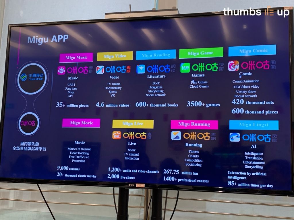 ล่าสุดก็ได้มีการเข้าถือหุ้น MIGU บริษัทสตาร์ทอัพด้านคอนเทนต์รายใหญ่ของจีน ที่มีประเภทคอนเทนต์ครอบคลุมทุกด้านไม่ว่าจะเป็น ภาพยนตร์ ซีรี่ส์ การแสดงสด กีฬา การ์ตูน คอนเสิร์ต เป็นต้น โดยจำนวนคอนเทนต์ทั้งหมดจะรับชมผ่านแอพพลิเคชั่นของ MIGU ซึ่งจะแยกเนื้อหาเฉพาะตามความสนใจของผู้ใช้งาน ทำให้ตอนนี้ MIGU มีกว่า 9 แอพพลิเคชั่นแล้ว