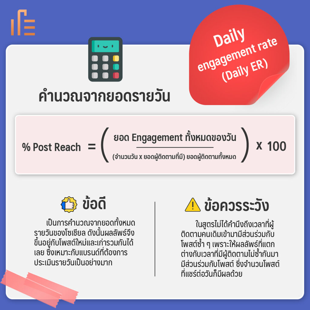 Daily engagement Rate (Daily ER) : คำนวณจากยอดรายวัน