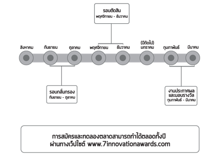 – ผู้สนใจโครงการสามารถดาวน์โหลดเอกสารลงทะเบียนทางเว็บไซต์ : www.7innovationawards.com