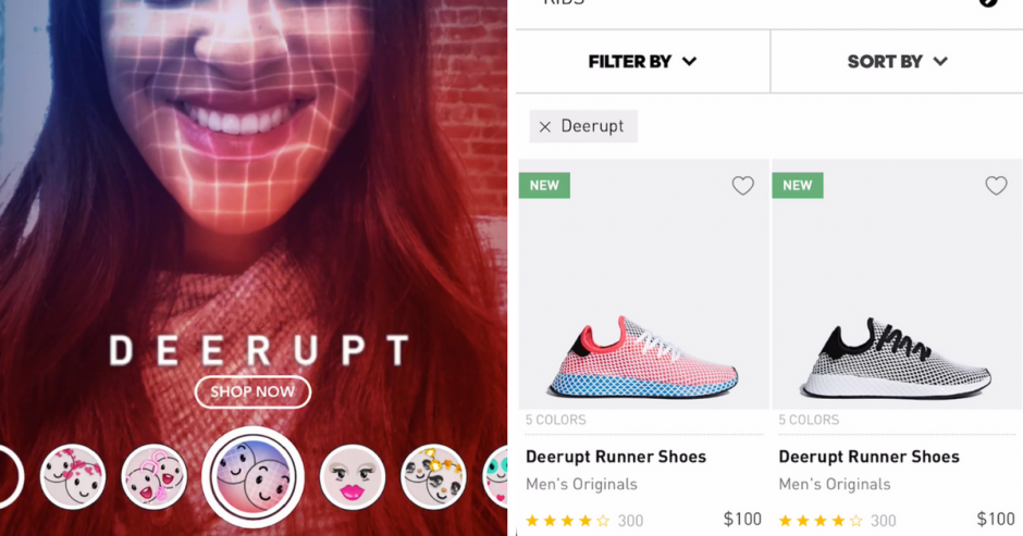 Snapchat นั้นเพิ่งเปิดตัวบริการใหม่ที่ช่วยให้แบรนด์สามารถรวมอีคอมเมิร์ซเข้ากับเทคโนโลยีจริงหรือ augmented reality (AR) ซึ่งผู้ใช้จะเห็นภาพดิจิทัลซ้อนทับภาพจริงที่เห็นผ่านกล้องสมาร์ทโฟน ผลคือนักการตลาดสามารถขายสินค้าให้กับผู้ใช้ Snapchat ได้ ผ่านบริการที่มีชื่อว่า Shoppable AR