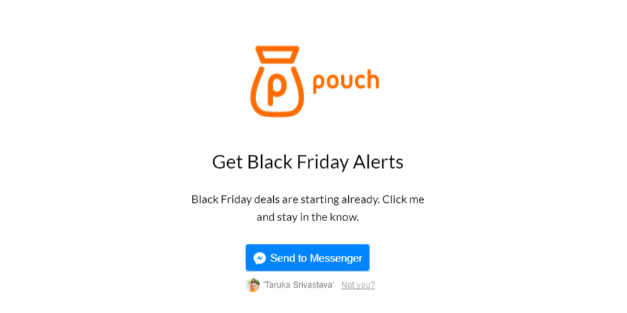 ผู้ใช้เบราว์เซอร์ Pouch จะได้พบบ็อตนี้บนแอปพลิเคชัน Facebook Messenger ซึ่งจะช่วยค้นหาข้อเสนอส่วนลดร้านค้าช่วง Black Friday และ Cyber Monday เมื่อทุกคนออนไลน์ จุดนี้ผู้ใช้จะได้รับบริการฟรี และสามารถถามหรือตอบโต้กับระบบเมื่อไรก็ได้ตามต้องการ