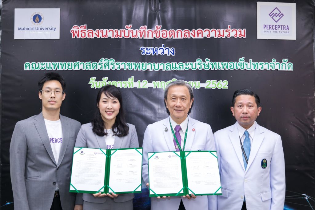 เพอเซ็ปทรา ลงนามบันทึกข้อตกลงความร่วมมือกับคณะแพทยศาสตร์ศิริราชพยาบาล มหาวิทยาลัยมหิดล ร่วมพัฒนาและผลักดันการใช้งานระบบปัญญาประดิษฐ์เพื่อรังสีวินิจฉัยในทุกโรงพยาบาล พร้อมทั้งยกระดับการให้บริการด้านสาธารณสุขทั่วประเทศ