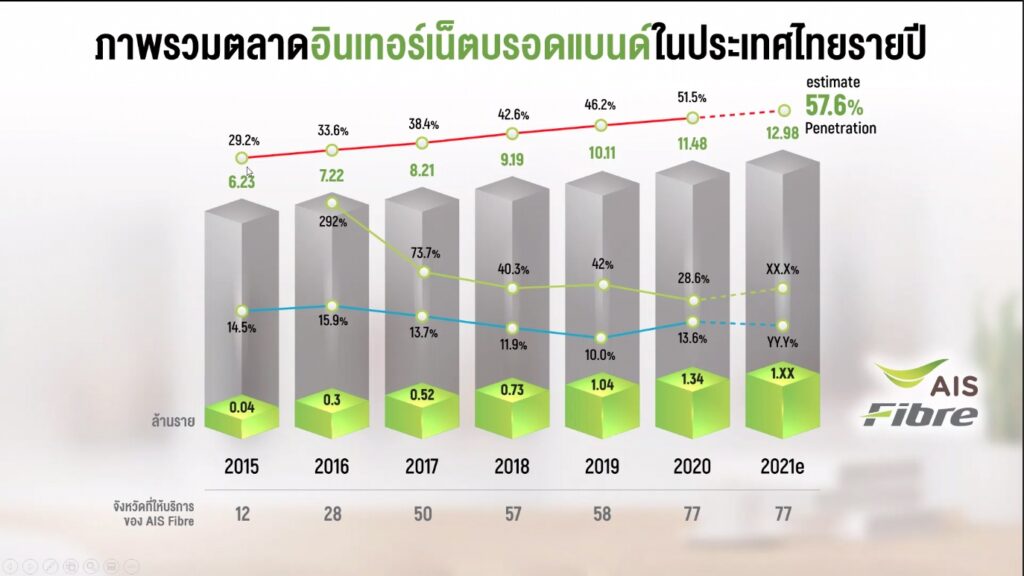 ด้วยภาวะโควิด-19 และเทรนด์การทำงานที่บ้าน ส่งผลในตลาดเน็ตบ้านมีความต้องการสูงขึ้นและผู้ให้บริการอินเทอร์เน็ตบ้านจำเป็นต้องพัฒนาเพื่อให้ทันการแข่งขันท่ีเพิ่มขึ้นอย่างรวดเร็ว ซึ่งภาพรวมอินเทอร์บรอดแบนด์ของประเทศไทยของครึ่งปีแรก คาดว่าจะมีการเติบโตขึ้นถึง 57.6% ถือว่าเติบโตตามความต้องการของประชาชนทั้งประเทศในการเข้าถึงอินเทอร์เน็ตเพื่อใช้ในการเรียนหรือทำงาน