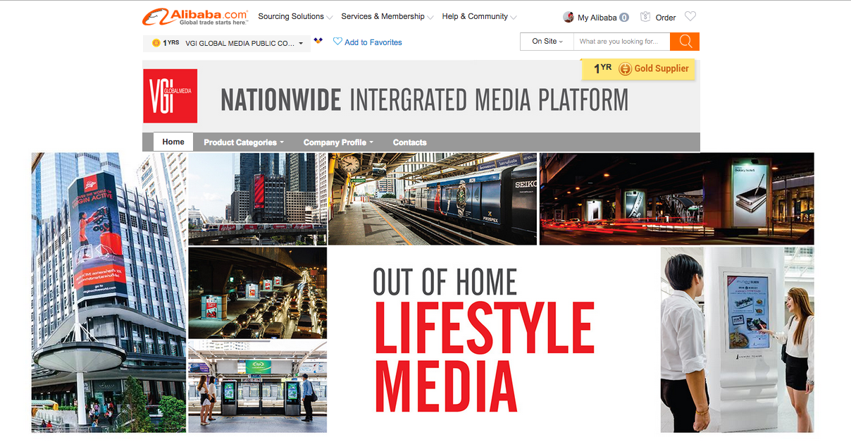 สื่อที่วางขายบน Alibaba มีทุกประเภท เช่น บนสถานีรถไฟฟ้า, บิลบอร์ด, LED, ในลิฟท์ ครอบคลุมทุกประเภทที่ VGI มีขายและแสดงอยู่ในปัจจุบัน สิ่งที่ VGI จะได้อย่างชัดเจนในการจับมือกันครั้งนี้ก็คือ การที่ลูกค้าที่สนใจสามารถจะติดต่อเพื่อลงโฆษณาได้ 24 ชั่วโมง รวมทั้งการรองรับการสนับสนุนในหลายๆ ภาษา นั่นก็เท่ากับว่า กลุ่มลูกค้าไม่ได้ถูกจำกัดอยู่ที่เมืองไทยเท่านั้น แต่คนต่างประเทศที่สนใจอยากจะนำสินค้าหรือบริการมานำเสนอในประเทศไทย ก็สามารถทำได้โดยไม่มีข้อจำกัดอีกต่อไป