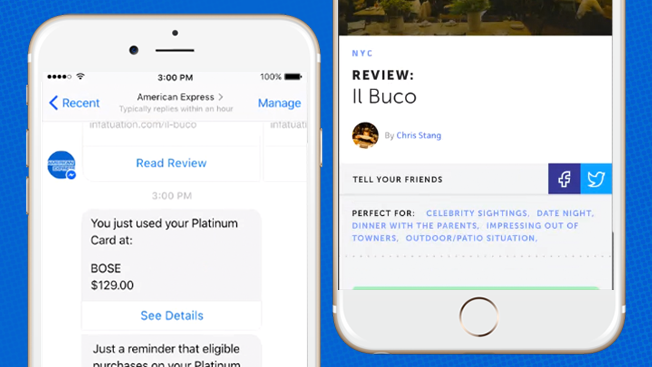 ได้ชื่อว่าเป็น First Financial Institution to Make a Facebook Messenger Bot สำหรับ American Express ที่ประเดิมให้บริการผ่านระบบแชตอัตโนมัติบน Facebook Messenger ก่อนเพื่อนร่วมอุตสาหกรรม จุดประสงค์ของความเคลื่อนไหวนี้คือการเปิดให้สมาชิกบัตร American Express สามารถใช้จ่ายผ่านบัตรได้ราบรื่นตลอดเวลา