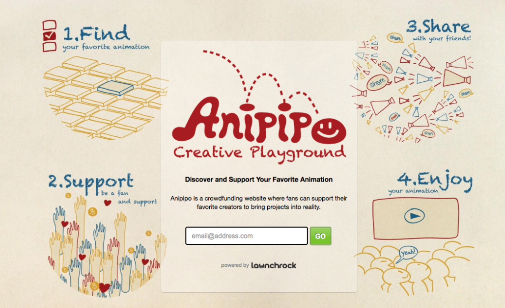 GOOPA Inc., is a creative IT service development company based in Tokyo?and Bangkok. The company is developing an animation focused crowd funding?website, Anipipo?. Anipipo provides a new way?for animation creators to find funding to support the production of their?animation. Creators will also be able to utilize Anipipo as a platform to get?connected with their fans from all over the world.?Along with this announcement, GOOPA Inc., will be launching the preregistration?website for Anipipo on Thursday 25th of?October.