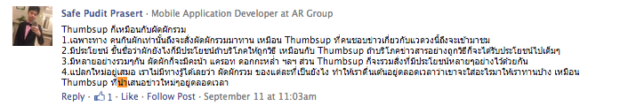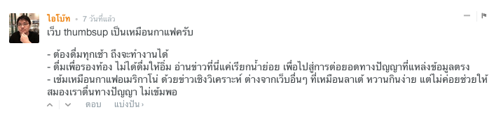 เมื่อสัปดาห์ก่อนเราได้มีการเปิดให้ร่วมเล่นเกมชิงรางวัลหนังสือ “Design Mobile App” กันไปแล้วนั้น กับโจทย์ที่ว่า “ถ้าเปรียบเทีบ thumbsup เป็นอาหาร เพื่อนๆ คิดว่าประสบการณ์ที่ได้จากเว็บฯ นี้เหมือนอาหารอะไรเอ่ย เช่น เหมือนข้าวที่ต้องกินทุกวัน เหมือนของหวาน กินเวลาที่เครียดจากงาน เป็นต้น”โดยเราได้คำตอบโดนใจจากผู้แต่งหนังสือ และทีม บก. คัดกันมาแล้วทั้งสิ้น 3 ท่าน ใครเป็นใครดูกันได้ที่นี่เลย สำหรับใครที่ได้รับรางวัลช่วยแจ้งที่อยู่ที่พร้อมให้จัดส่งมาทาง contact [at] thumbsup.in.th ภายในวันอาทิตย์ที่ 22 กันยายน 2556 มิฉะนั้นจะถือว่าท่านสละสิทธิ์และขอมอบสิทธิ์ให้กับท่านถัดไป