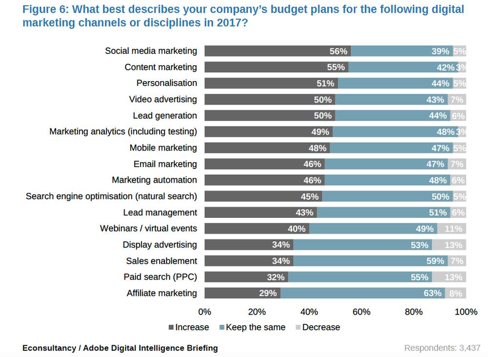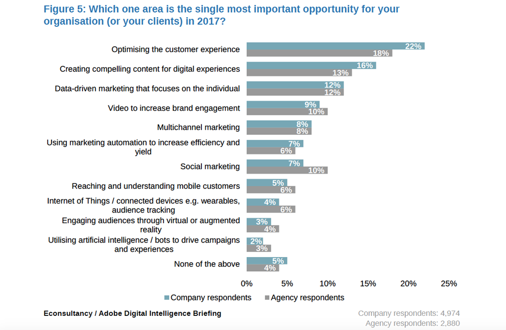 เพื่อให้ทราบว่านักการตลาด APAC ให้ความสำคัญกับนโยบายดิจิทัลใดเป็นพิเศษในปีนี้ บริษัทวิจัยอย่าง Econsultancy และ Adobe จึงสัมภาษณ์นักการตลาดใน APAC จนพบว่าส่วนใหญ่ให้ความสำคัญกับการสร้าง app engagement โดยเน้นนโยบายตอบโจทย์ความสนใจส่วนตัวของลูกค้าแต่ละคนเป็นหลัก