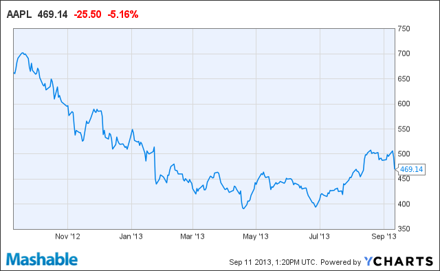 หลังจากงานเปิดตัวสินค้าใหม่ของ Apple ปรากฏว่าหุ้นของบริษัทร่วงลงทันทีกว่า 2% โดยมูลค่าหุ้นเมื่อตอนปิดตลาดในวันอังคารที่ 10 กันยายนตกลงมาอยู่ที่ 494 เหรียญ และเมื่อเปิดตลาดในวันพุธ ก็พบว่ามูลค่าหุ้นของ Apple ยังคงลดลงอย่างต่อเนื่องมาอยู่ที่ 467 เหรียญ ซึ่งเท่ากับว่าหุ้นของ Apple ลดลงกว่า 5% เลยทีเดียว