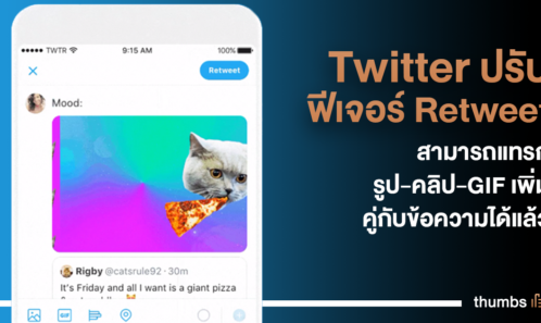 Social MediaTwitter ปรับให้ Retweet ที่ใส่ได้แค่ข้อความ สามารถแทรกใส่รูป-คลิป-GIF เพิ่มได้แล้ว Jenpasit May 8, 2019May 8, 2019