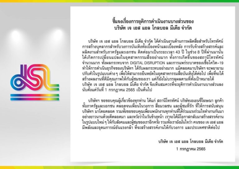 BusinessJSL ประกาศชี้แจงเรื่องการยุติการดำเนินงานบางส่วน 1 กค. 65 นี้ LadyBee June 30, 2022June 30, 2022
