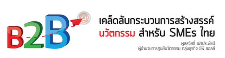 “B 2 B” จึงถือได้ว่าเป็นกลยุทธ์หนึ่งที่สำคัญ และเป็นเคล็ดลับของกระบวนการสร้างสรรค์นวัตกรรม ซึ่งผู้ประกอบการ SMEs ไทย ควรศึกษาแล้วนำมาประยุกต์ใช้ให้เหมาะสมกับบริบทขององค์กรตนเอง