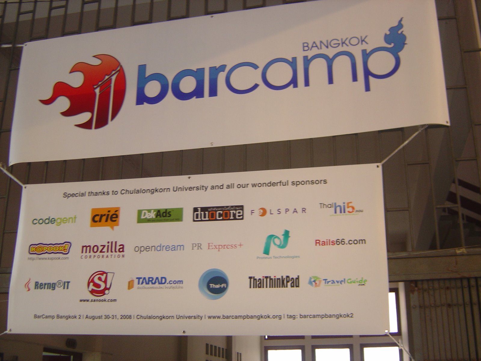งาน Barcamp เป็นงานที่จัดตั้งขึ้นโดยกลุ่มอาสาสมัครที่รวมตัวกันทำงานขึ้นแบบหลวมๆ และกระจายตัวอยู่ทั่วโลกเพื่อจัดงานรวมตัวกันของคนที่คลั่งไคล้เทคโนโลยีในรูปแบบ unconference สำหรับบ้านเราจัดกันมาแล้วหลายครั้งภายใต้ชื่อ “Barcamp Bangkok” (ยังมี Barcamp Chiangmai และจังหวัดอื่นๆ อีกหลายแห่ง) ในแต่ละครั้งได้รับการสนับสนุนจากบริษัทอินเทอร์เน็ตและเทคโนโลยีระดับโลกแทบทุกครั้ง เช่น Google, Yahoo!, Microsoft, IBM, Mozilla, DELL, HTC, รวมถึงบริษัทในเมืองไทยด้านนี้แทบทุกแห่ง… Barcamp เป็นกลุ่มที่ไม่แสวงผลกำไรใดๆ แต่ทุกคนรวมตัวกันเพื่อจัดงานที่จะให้และแลกเปลี่ยนความรู้ซึ่งกันและกันในแบบดีเยี่ยม ทำให้งานได้รับความนิยมตลอดมา ทาง thumbsup จึงขออาสาเป็นปากกระบอกเสียงให้ Barcamp บ้าง และเราจะบอกว่า
