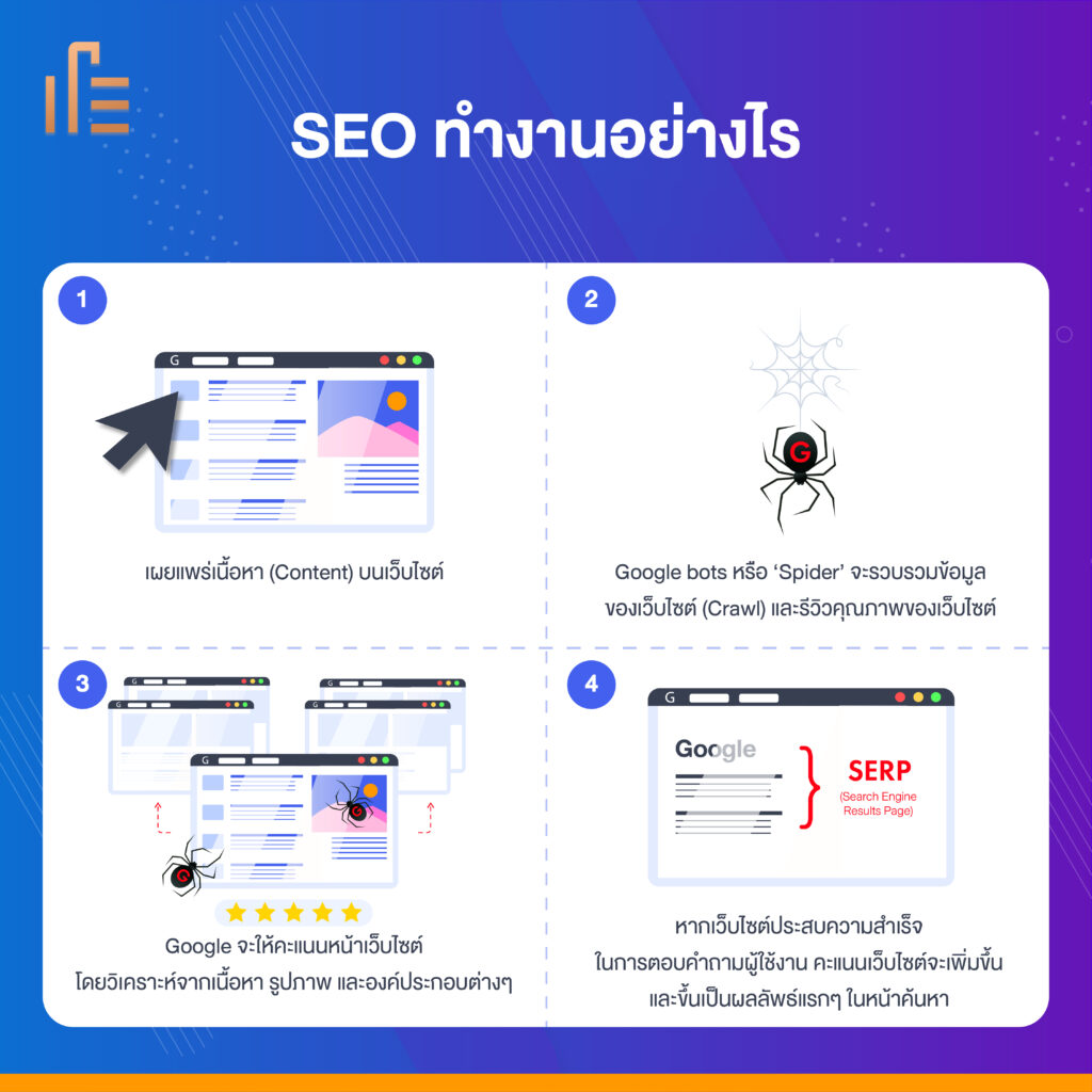 - Google จะให้คะแนนหน้าเว็บไซต์ โดยวิเคราะห์จากเนื้อหา รูปภาพ และองค์ประกอบต่างๆ