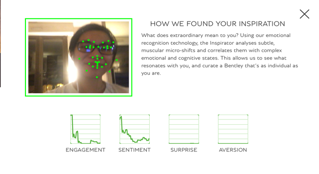 ในแอพพลิเคชันนี้ การยิ้มหรือการแสดงอารมณ์ด้วยใบหน้า (facial reaction) ที่แตกต่างจะทำให้คอนเทนต์ในแอพของ Bentley เปลี่ยนแปลงไป วิธีนี้ทำให้ Bentley เคลมว่าสามารถแนะนำสินค้าได้แบบ recommended specification ตามความสนใจของผู้ใช้ ซึ่งมักจะยิ้มเมื่อได้ชมสิ่งที่ชื่นชอบ
