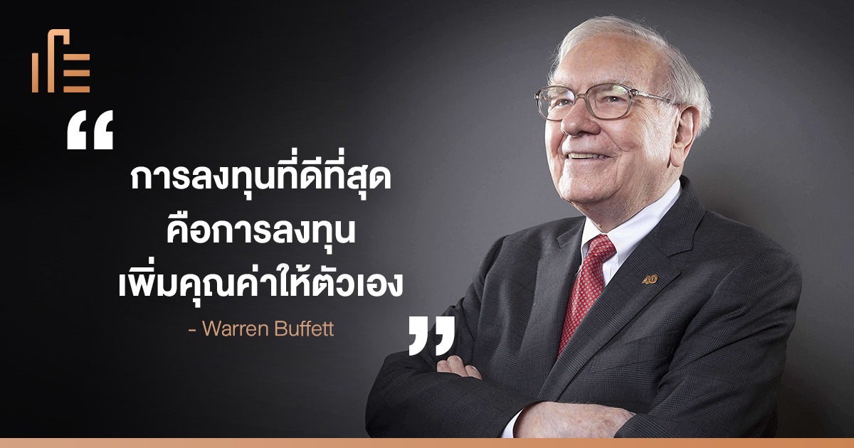 แน่นอนว่ามีคนจำนวนมากถามคำถามเดียวกันซ้ำๆ กับเขาว่า ลงทุนอย่างไรให้รวย โดยบัฟเฟตต์ได้ตอบคำถามนี้ในการสัมภาษณ์ว่า “การลงทุนที่ดีที่สุดคือการลงทุนในตัวคุณเอง อะไรก็ตามที่ช่วยเพิ่มทักษะของคุณ ไม่มีใครสามารถขโมยหรือเก็บภาษีไปได้”