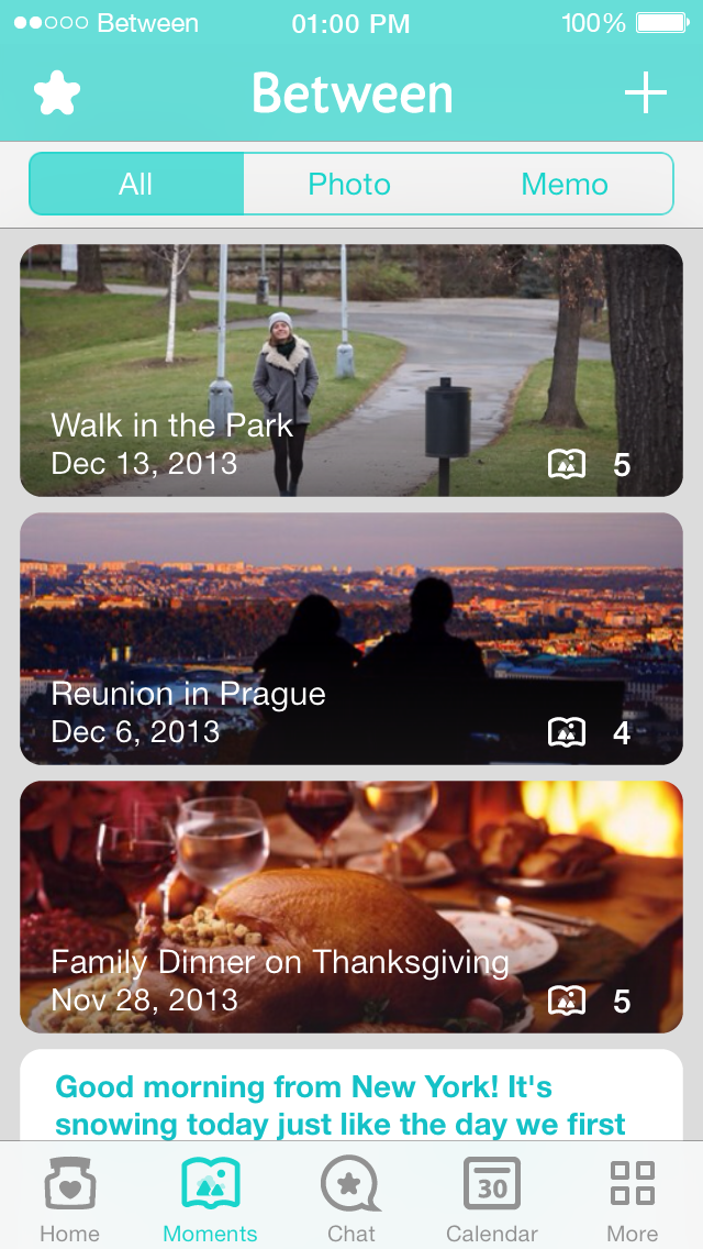 More Visual User Interface – Between 2.0 employs a highly visual user interface design that is more appealing to users. Couples will be able to enjoy and recall more of their favourite memories better as there is greater emphasis on photos and how they are displayed and organised.