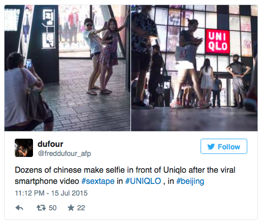 Brandingจีนจับกุม 5 ผู้เกี่ยวข้องกับ ”ไวรัลวิดีโอเสียว” ภายในร้าน Uniqlo thumbsupteam July 20, 2015July 20, 2015