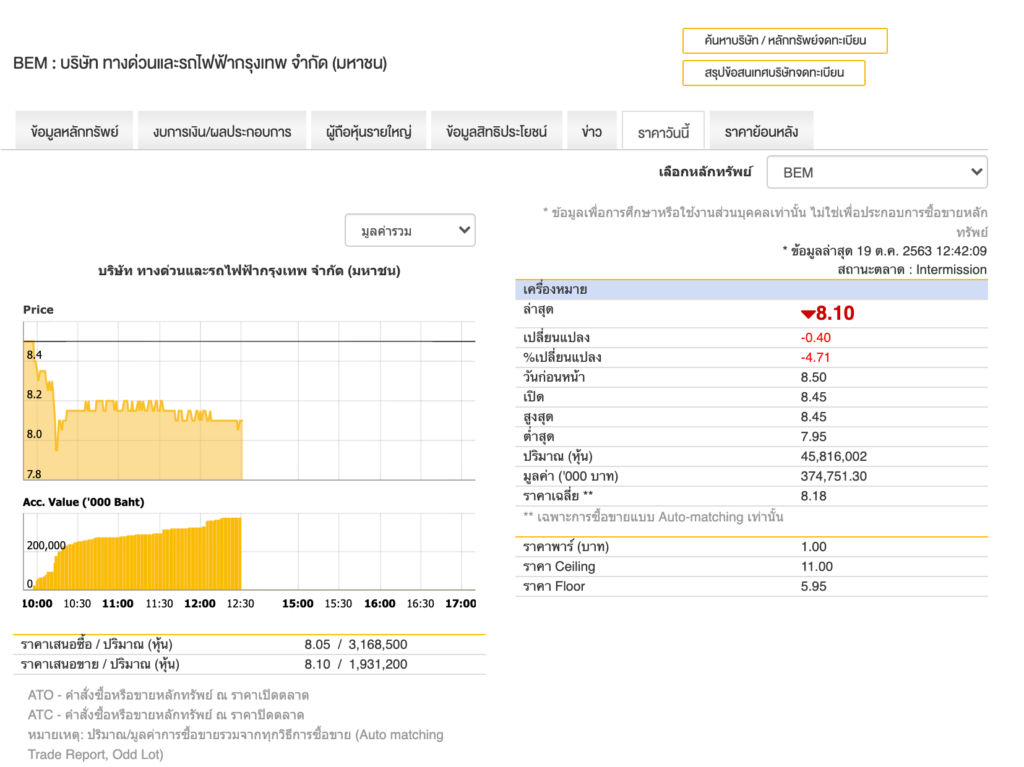 และจากปัญหาการระงับให้บริการของรถไฟฟ้าสาธารณะทั้ง BTS-MRT-ARL นั้น ส่งผลให้ต้องเจอภาวะหุ้นตกอย่างต่อเนื่อง โดยช่วงเที่ยงของวันนี้ (19 ตค.63) เมื่อเช็คสถานการณ์หุ้นของ BTS พบว่า มีตัวเลขลดลง 8.95%