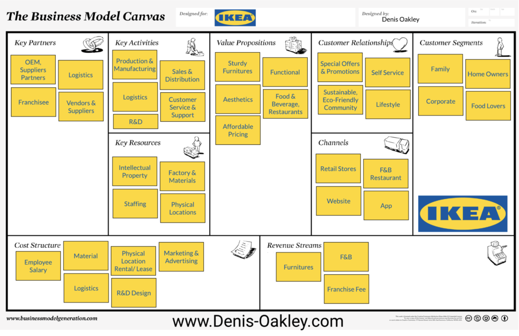 เมื่อรู้ข้อมูลของ Facebook แล้ว ที่เป็นธุรกิจออนไลน์แล้ว เรามาลองดูของกลุ่มค้าปลีกรายใหญ่อย่าง IKEA (อิเกีย) กันบ้างว่าเขามีการทำแผนบิสิเนส โมเดล แคนวาสอย่างไรกันบ้าง