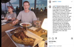 และอาหารหลักของวัวที่มาร์กเลี้ยงนั้น คือแมคคาเดีย ดังนั้นทำให้นอกจากจะเลี้ยงวัวด้วยแล้ว มาร์ก ซักเคอร์เบิร์กยังต้องลงทุนปลูกต้นแมคคาเดียเมียด้วย