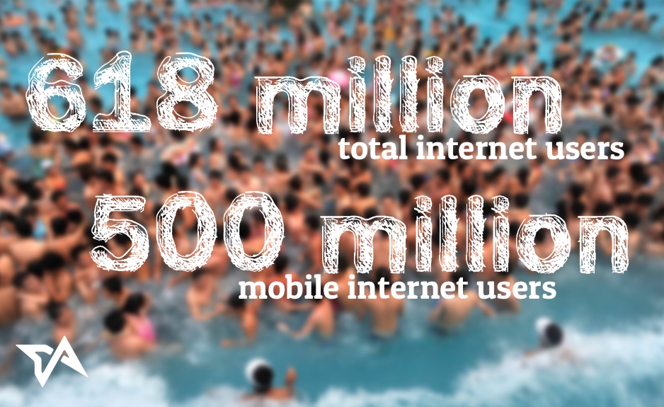 สถิติน่าสนใจจากแผ่นดินจีนคือจีนเป็นประเทศที่มีผู้ใช้อุปกรณ์ระบบปฏิบัติการ Android มากกว่า 270 ล้านคน ซึ่งถือเป็นจำนวนเกินครึ่งของนักท่องเน็ตบนอุปกรณ์พกพาจีน 500 ล้านคน โดยสัดส่วนการใช้งานอินเทอร์เน็ตต่อประชากรจีนขณะนี้คือ 45.8% (ด้านล่างคือแผนภูมิแสดงสถิติผู้ใช้งานอินเทอร์เน็ตโดยรวมของจีน)