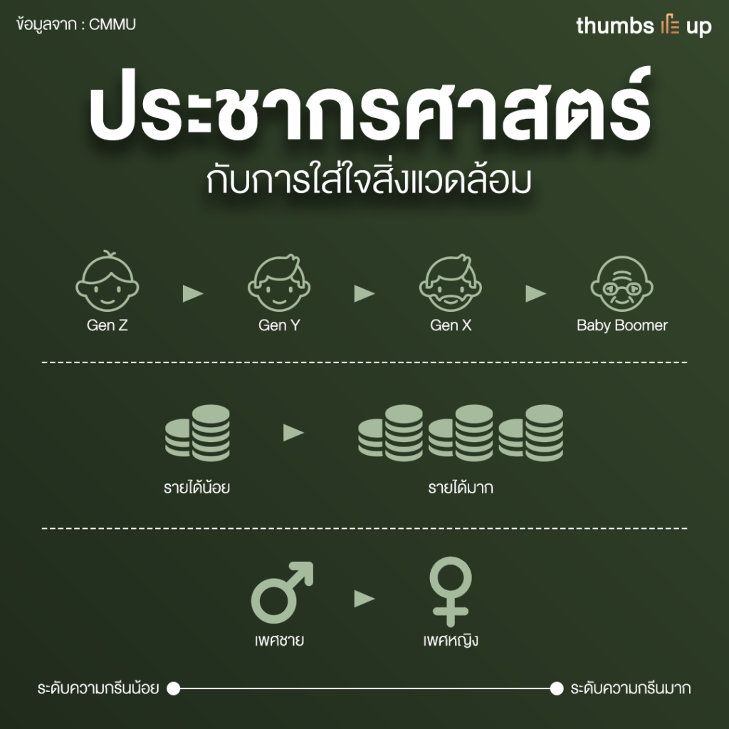 สุดท้าย คือกลุ่ม #สายกรีนตัวแม่ เป็นกลุ่มที่มีความตั้งใจทำทุกอย่างและยินดีจ่ายเงินเพิ่มขึ้นเพื่อรักษาสิ่งแวดล้อม ซึ่งกลุ่มนี้มีตัวเลขสูงที่สุดและเชื่อว่ามีโอกาสเพิ่มขึ้นในอนาคต
