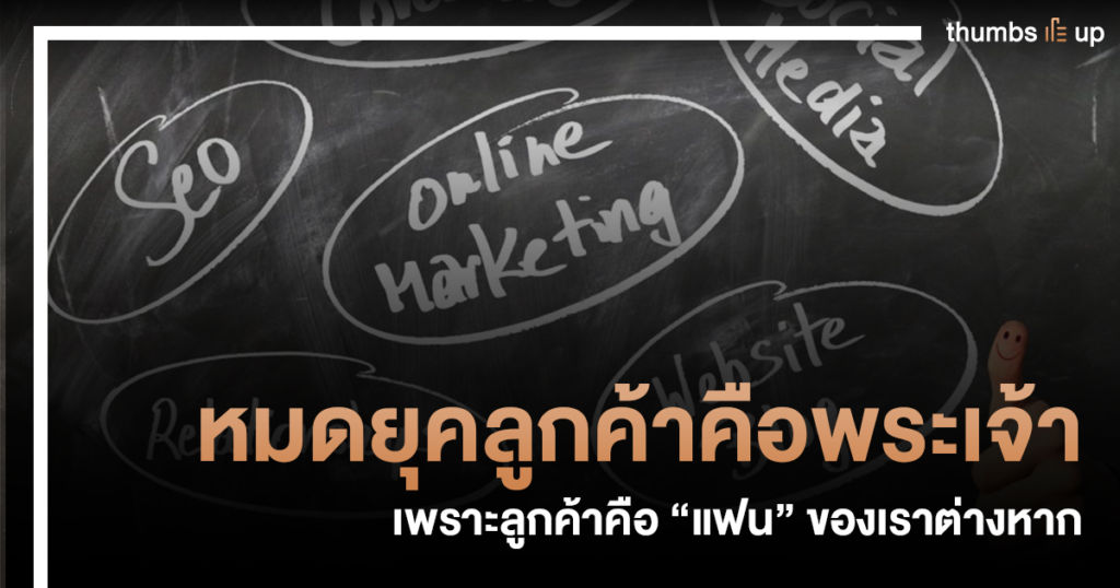 หากนักการตลาดมัวแต่คิดว่าจะใช้กลยุทธ์อะไรใช้ Key message แบบไหนให้ลูกค้ามองแบรนด์เราเป็น Top of Mind ในใจ เมื่อถึงจังหวะหนึ่งก็คงต้องเจอปัญหาทางตันกันบ้าง แต่หากลองเปลี่ยนความคิดวาลูกค้าคือ “พระเจ้า” เป็น “แฟนของเราเอง”