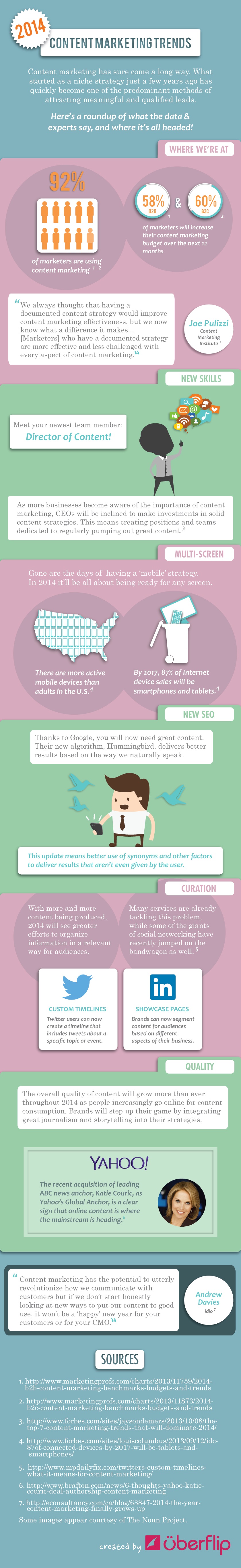 โดยความเห็นส่วนตัวของผมแล้ว ประเด็นที่น่าสนใจนอกเหนือจากการผลิตคอนเทนต์ที่โดดเด่น รวดเร็ว และสามารถดึงดูดกลุ่มเป้าหมายได้แล้ว สิ่งที่เราจะเห็นกันในปี 2014 ก็คือความพยายามที่จะนำเสนอมันในรูปแบบที่ตอบสนองพฤติกรรมของกลุ่มเป้าหมายให้ได้ดีขึ้นด้วย ซึ่ง Yahoo! เป็นตัวอย่างหนึ่งที่น่าจับตาและถือว่าค่อนข้างโดดเด่นในรอบปีที่ผ่านมา ด้วยความพยายามที่จะซื้อกิจการบริษัทเล็กๆ จำนวนมากเพื่อมาเสริมความแข็งแกร่งของ platform ของ Yahoo! ไม่ว่าจะเป็นการซื้อ Tumblr หรือบริษัทที่จัดการเทคโนโลยีวิดีโอ โดยในส่วนนี้เป็นการทำช่องทางการรับคอนเทนต์ให้แข็งแรงและตอบโจทย์ไลฟ์สไตล์ของผู้บริโภครุ่นใหม่ให้มีประสิทธิภาพมากที่สุด แต่ในอีกฝั่งหนึ่ง Yahoo! ก็ให้ความสำคัญกับตัวคอนเทนต์เป็นอย่างมาก ไม่ว่าจะเป็นการดึงตัว David Pogue จาก New York Times หรือแม้แต่ Katie Couric จาก ABC News ซึ่งทั้งสองถือเป็นบุคลากรข่าวสารที่โดดเด่นมาก นั่นแสดงให้เห็นว่าการจะทำโจทย์ของ Content Marketing ให้แข็งแรงต้อประกอบด้วยทั้งฝั่งของคอนเทนต์และช่องทาง