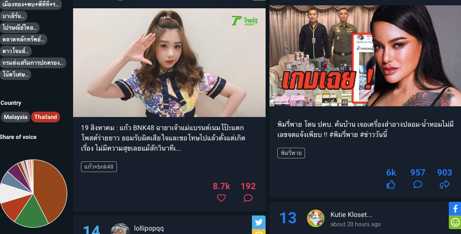 นอกจากนี้ ทางทีมงาน thumbsup ได้เปรียบเทียบแฮชแท็กใน twitter และเทรนด์ใน wisesight ก็ยังพบว่านอกจากเรื่องข่าวคราววงการบันเทิงที่ร้อนแรงนั้น ยังแฝงไปด้วยความเข้าใจและเรียกร้องให้คนรุ่นใหม่ใส่ใจในเรื่องของสินค้าลิขสิทธิ์ ทั้งอยากให้คนรุ่นใหม่ตระหนักถึงการเลือกซื้อสินค้าที่เป็นของแท้มากกว่าของก็อปกันมากขึ้น