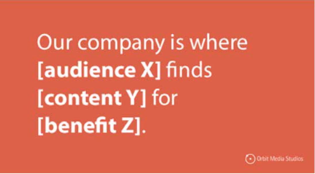 แอนดี เครสโตดินา แห่ง Orbit Media Studios ได้สร้างสมการคำแถลงการณ์พันธกิจสำหรับ Content Marketing ไว้อย่างง่ายๆ ว่า