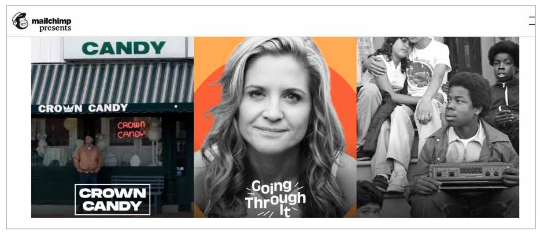 หากคุณได้เห็นประกาศของทางเว็บไซต์ Mailchimp Presents (เว็บไซต์ของ Mailchimp ซึ่งเป็นบริษัทด้าน E-mail Marketing – ผู้แปล) จะพบว่าบริษัท E-mail Marketing นี้ได้ปล่อย Content จำนวนมหาศาลออกมาทั้งในรูปแบบของซีรีย์สั้นๆ ภาพยนตร์ แอนิเมชัน พอดแคสต์ และอื่นๆ อีกมากมายในเวลาใกล้เคียงกัน และมุ่งเป้าไปยังผู้ประกอบการธุรกิจต่างๆ