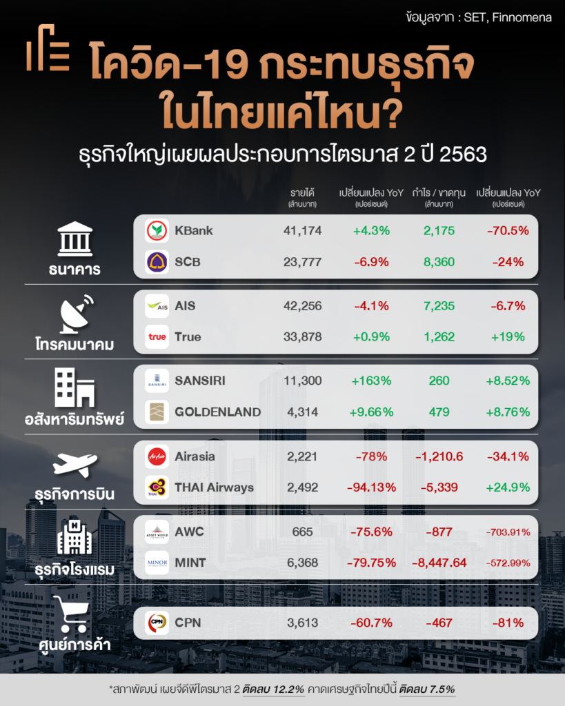 ในเดือนที่ผ่านมาหลายธุรกิจได้เผยผลประกอบการในไตรมาส 2 ปี 2563 ผู้เขียนขอพาสำรวจว่าธุรกิจใหญ่ในไทยได้รับผลกระทบแค่ไหนจากวิกฤตในครั้งนี้